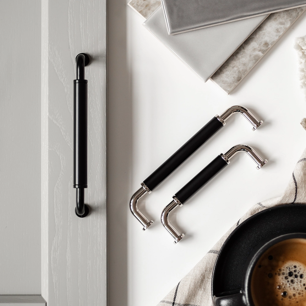Lidhult funk handle in nickel and black is available in cc 96 and cc 128 mm. This classic handle combines modern design with durability, perfect for upgrading both new and renovated kitchens.