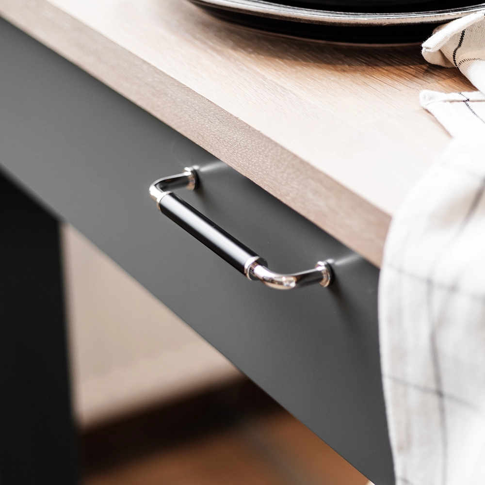 Lidhult funk handle in nickel and black is available in cc 96 and cc 128 mm. This classic handle combines modern design with durability, perfect for upgrading both new and renovated kitchens.