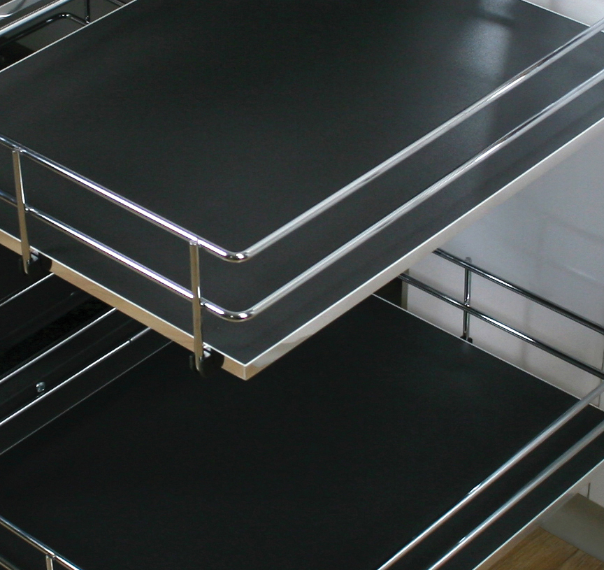 - The pull-out has four baskets where all can handle 5-10 kg and where all the baskets come completely out of the cabinet when the extract is pulled out.