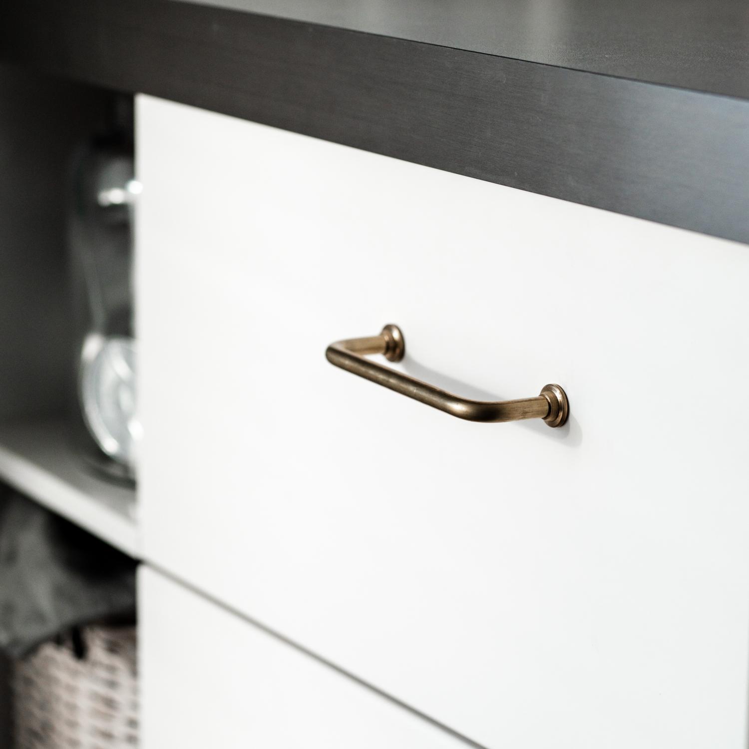 - The hardware is mounted with the supplied screws through a door or drawer.