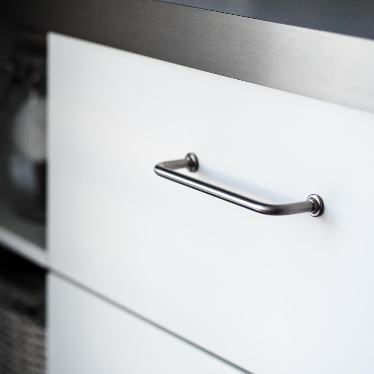 - The hardware is mounted with the supplied screws through a door or drawer.