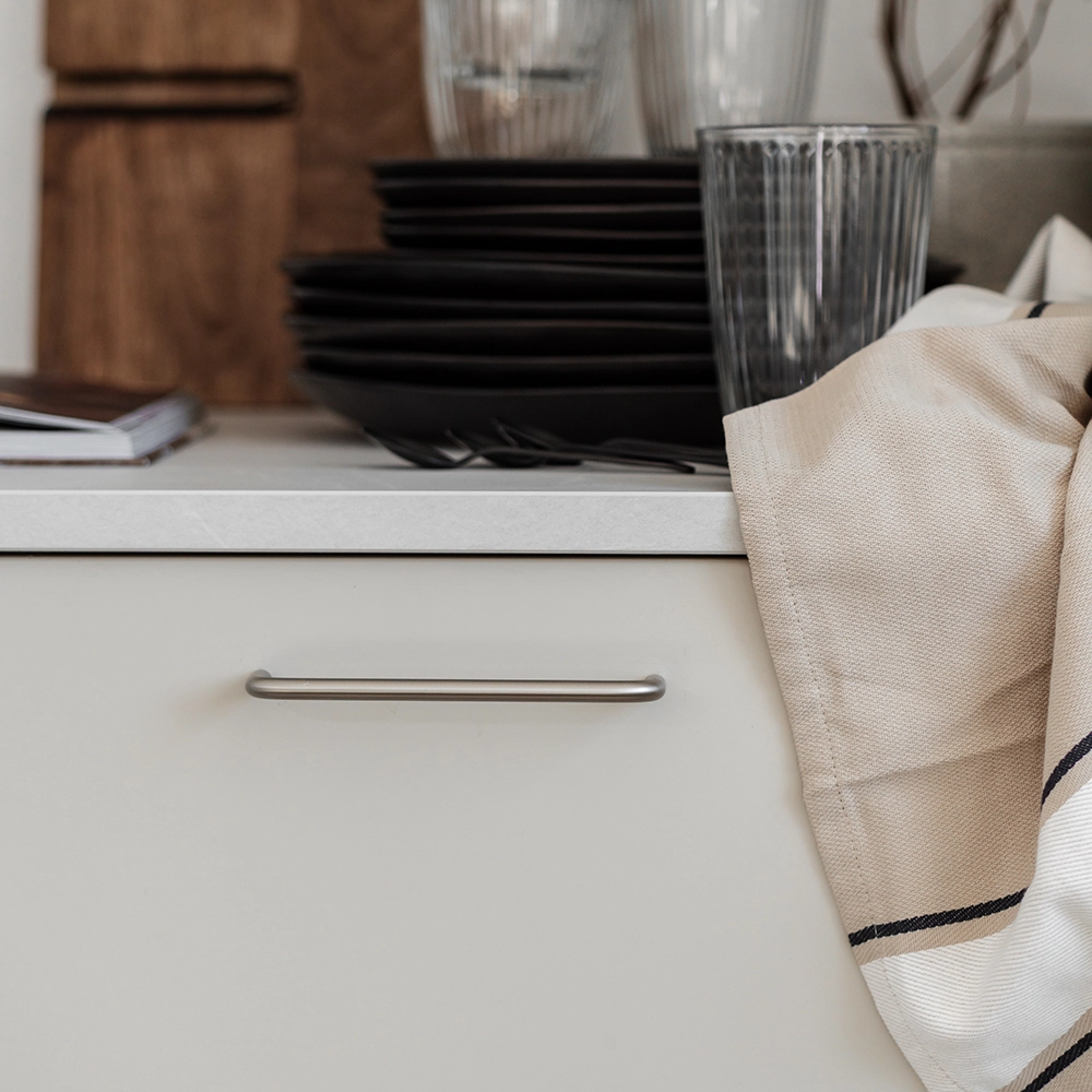 Kitchen handle 7353 in brushed nickel.