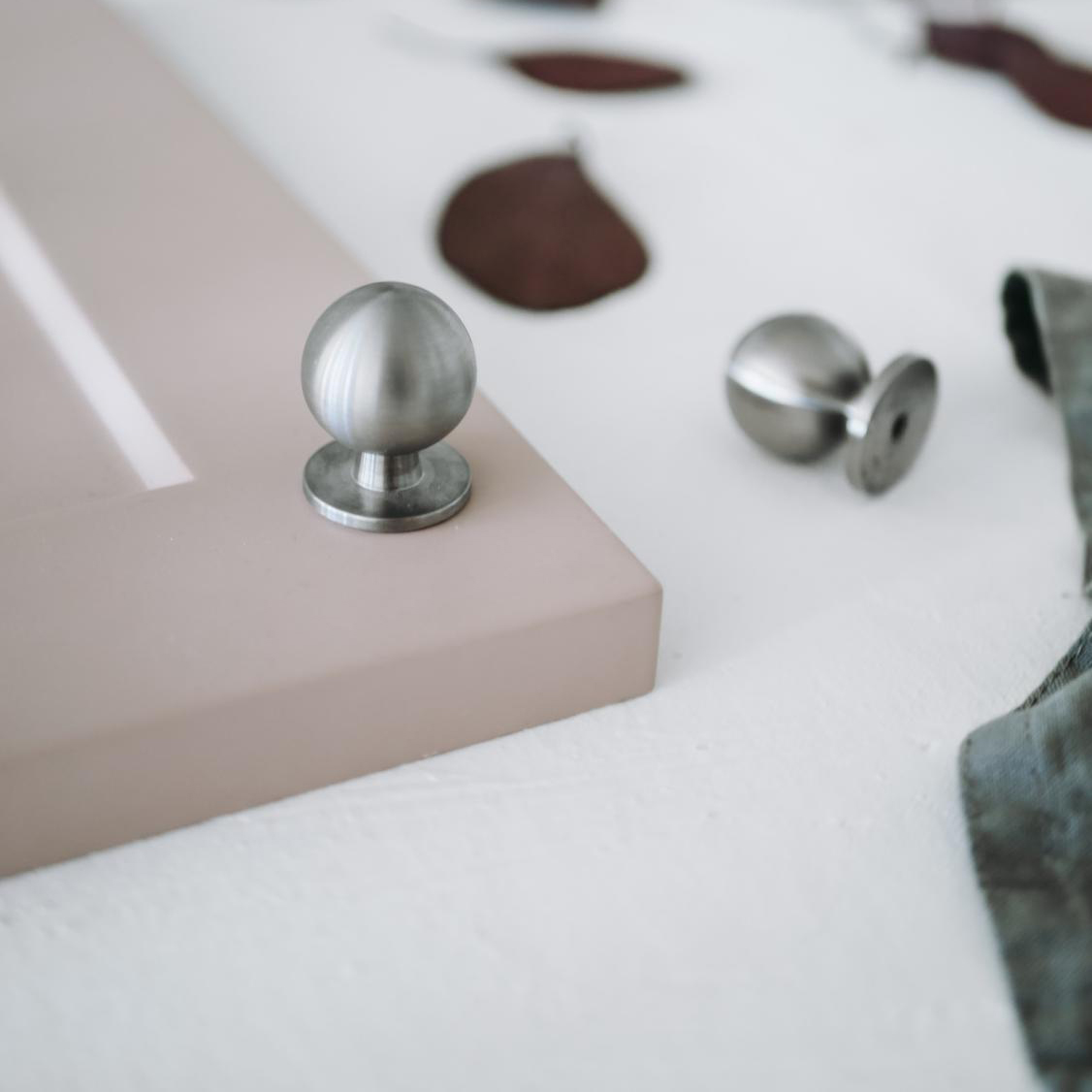 Berg is nice furniture knob with a wide round foot. Fits in the kitchen as well as in a dresser or sideboard.