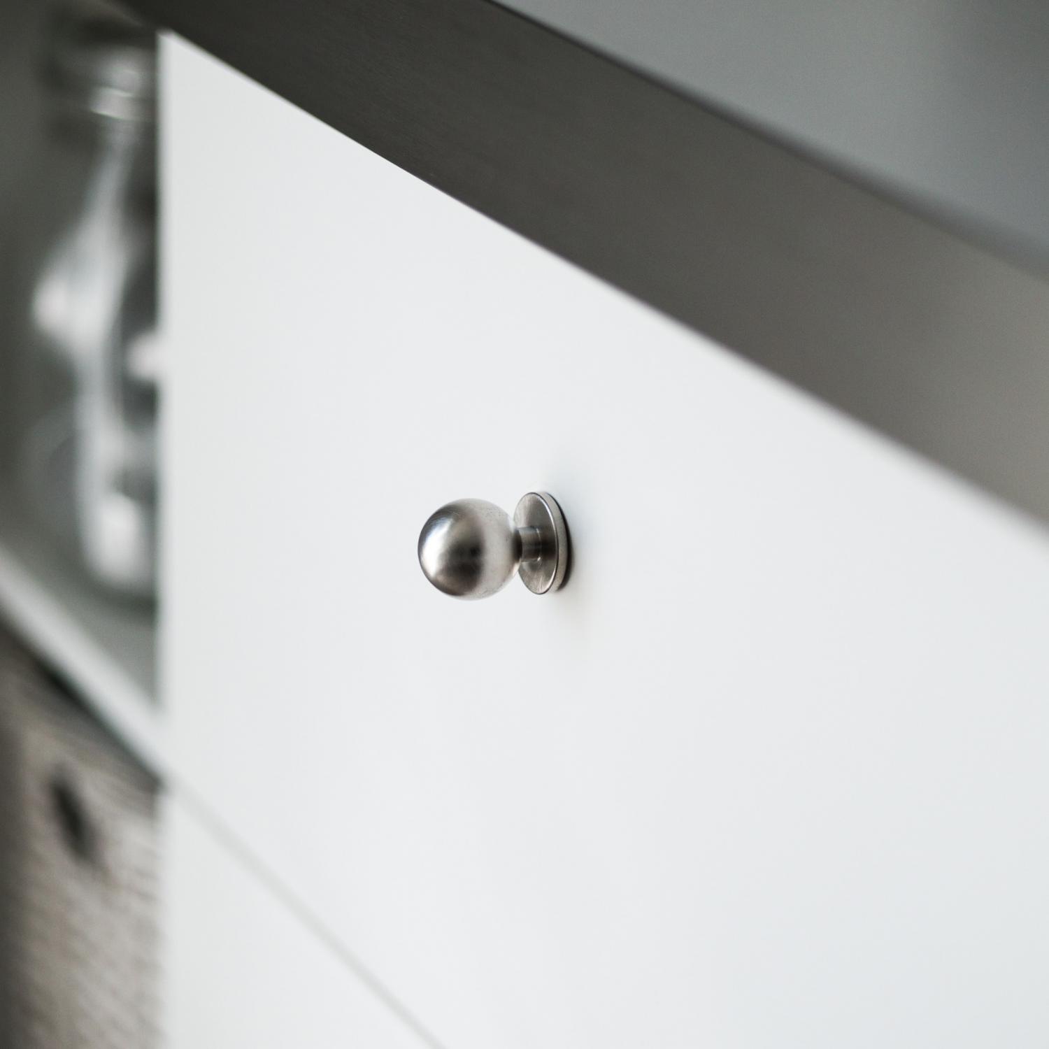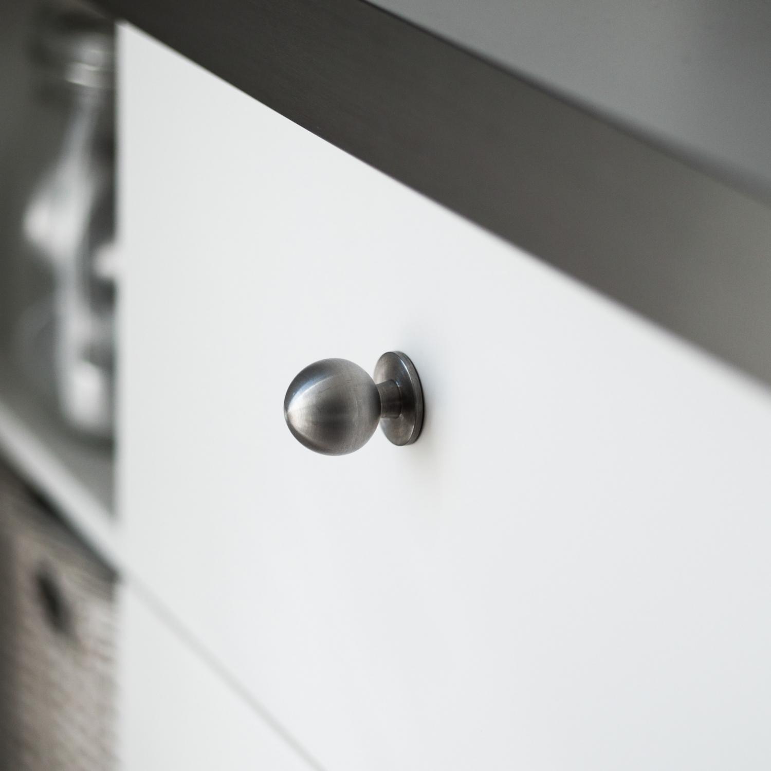 Furniture knob in metal for kitchen, bathroom or hallway. Berg is an elegant knob with a round and wide "foot". Goes really well in the kitchen but also to a dresser or drawer.
