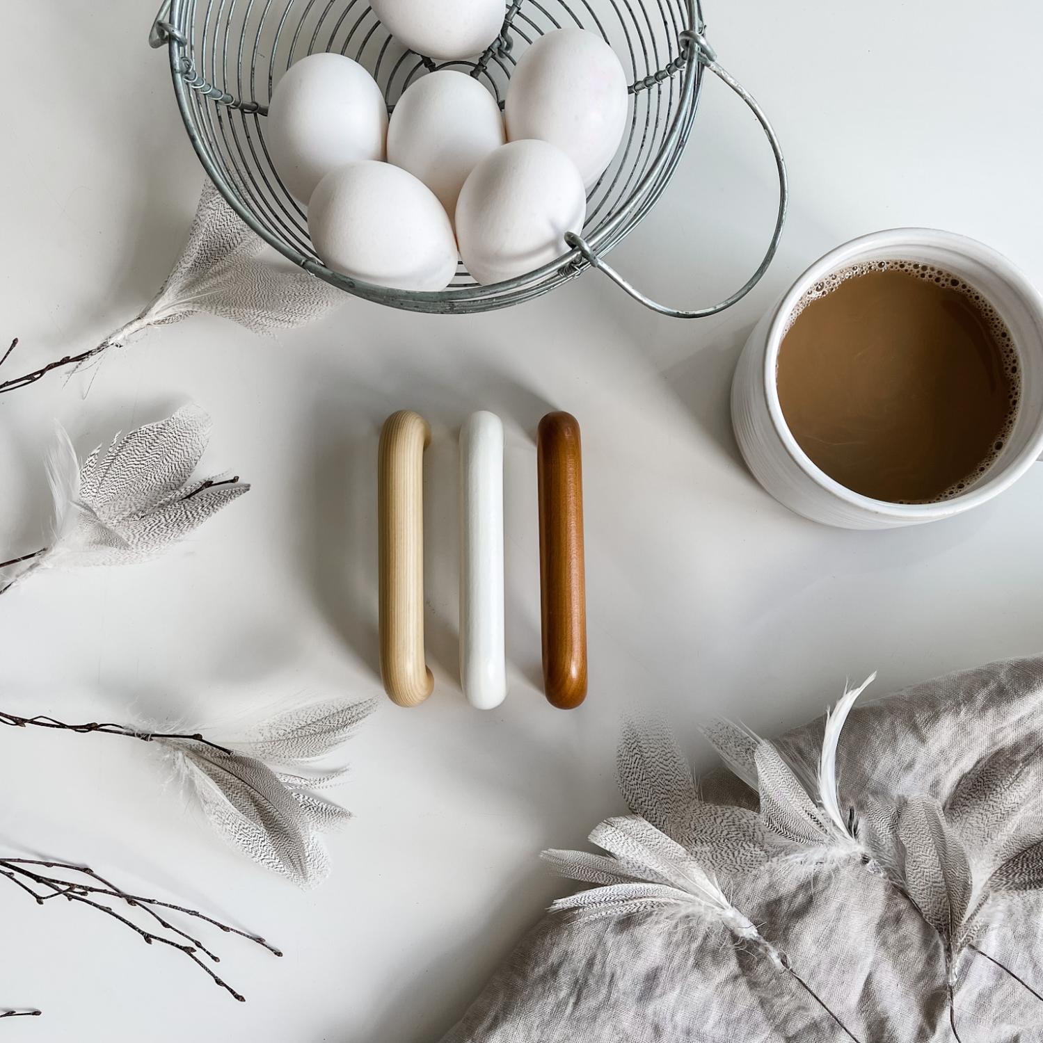 Furniture wooden handles in white wood.