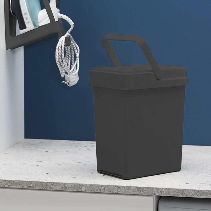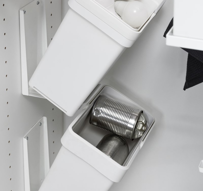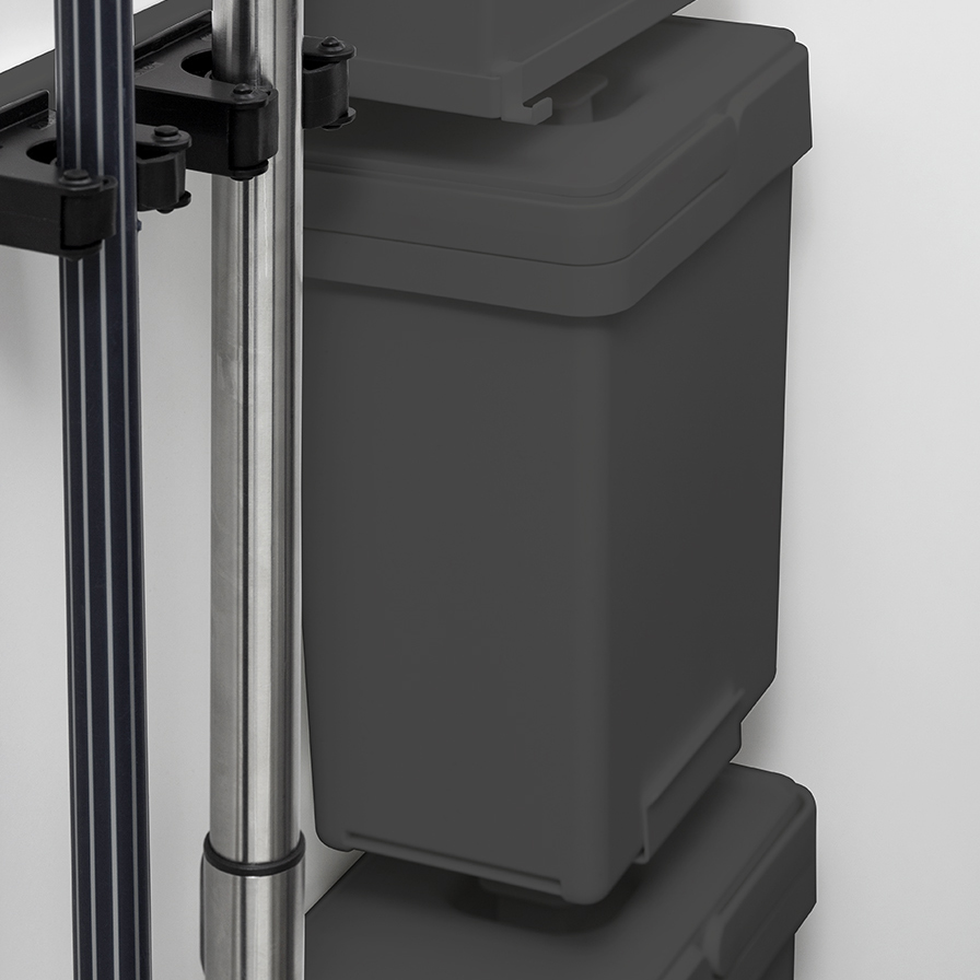 Källsorteringshinken Flip är en smart hink för väggmontering i tvättstugan eller städskåpet. Hinken har en fällningsfunktion vilket gör att flera hinkar kan placeras tätt ihop både i höjd och bredd utan att det påverkar funktionen. Hinkarna är perfekta som ett komplement till övrig källsortering för exempelvis konservburkar, glas och papper eller som en smart förvaringslösning i skåpet.