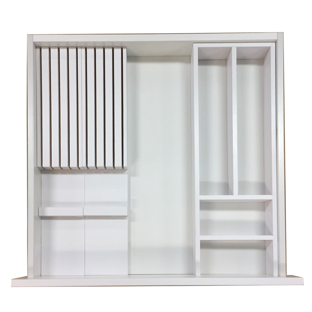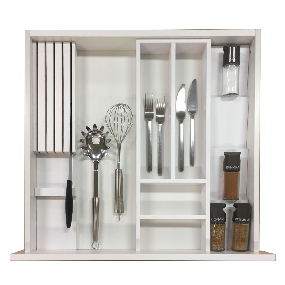 Snygg, knivinsats i vit bok som passar perfekt i kökslådor och utnyttjar utrymmet maximalt med sin slimmade design och raka sidor.