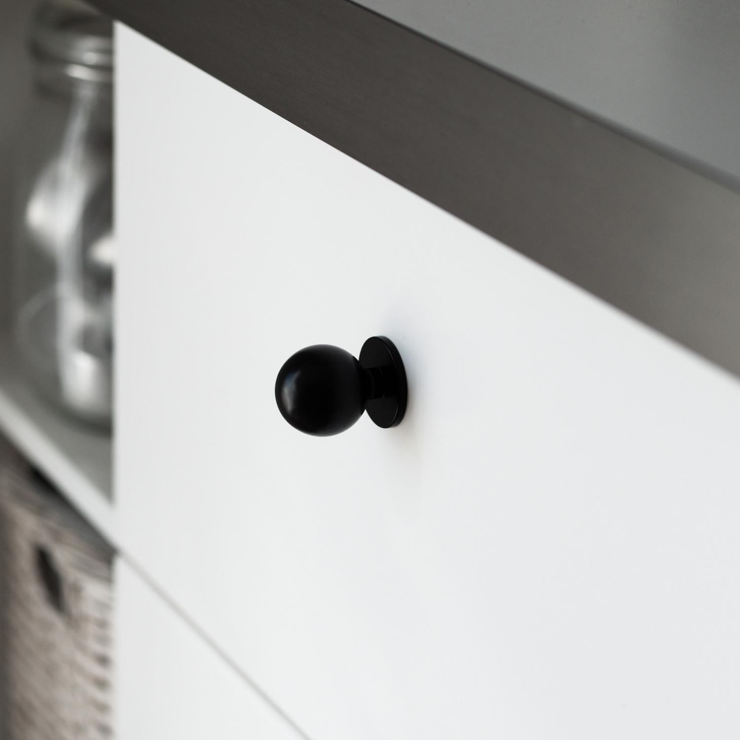 Knoppen Berg är vår mest populära köksknopp som passar de flesta inredningsstilarna! Knoppen är helt solid i sin metall och ger därför en massiv känsla som håller i många år! Populärast är Berg att sätta i köket men fungerar lika bra på en byrå, kommod eller skänk. Berg har ett runt bollformat grepp och en platt fot som kan vara fördelaktig för att dölja märken efter tidigare beslag. Vi erbjuder Berg i två olika storlekar!