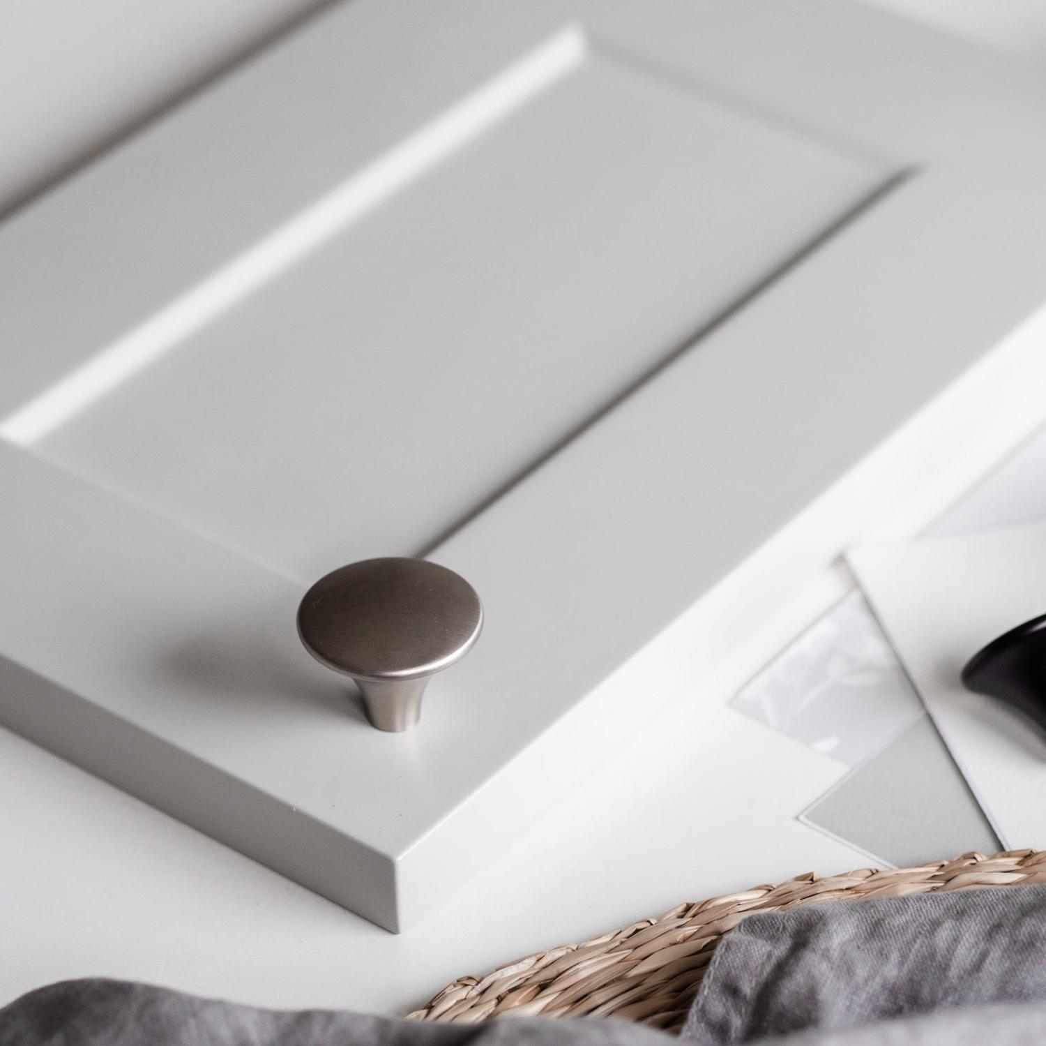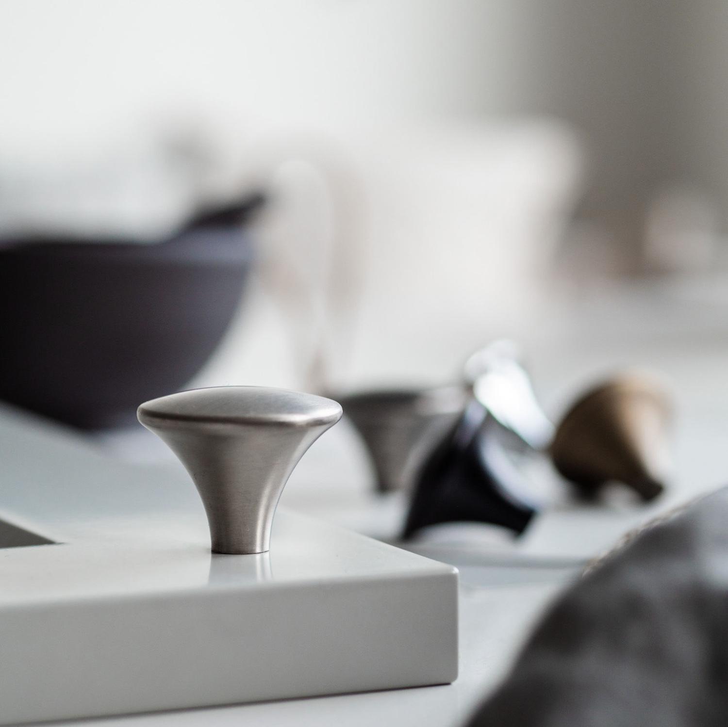 Modern nickelfärgad köksknopp Mushrrom i skandinavisk design.