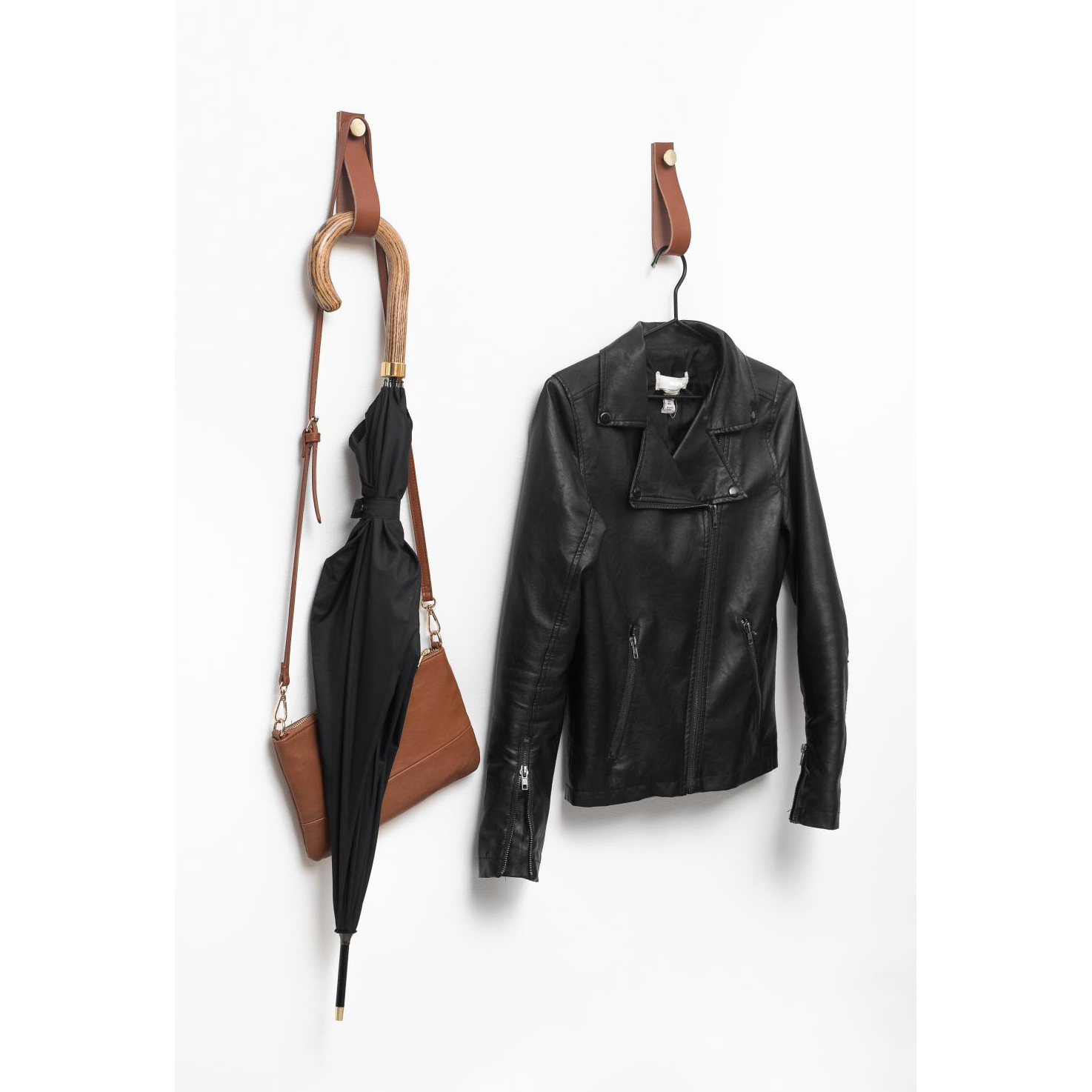 - Knoppen monteras utanpå lädret för extra upphängningsmöjlighet.