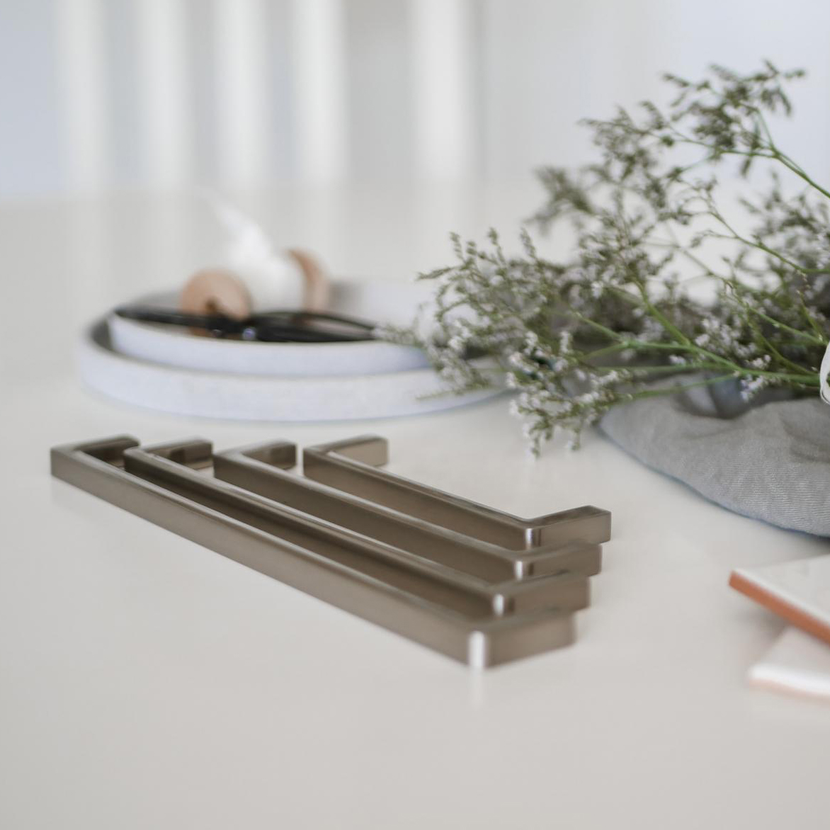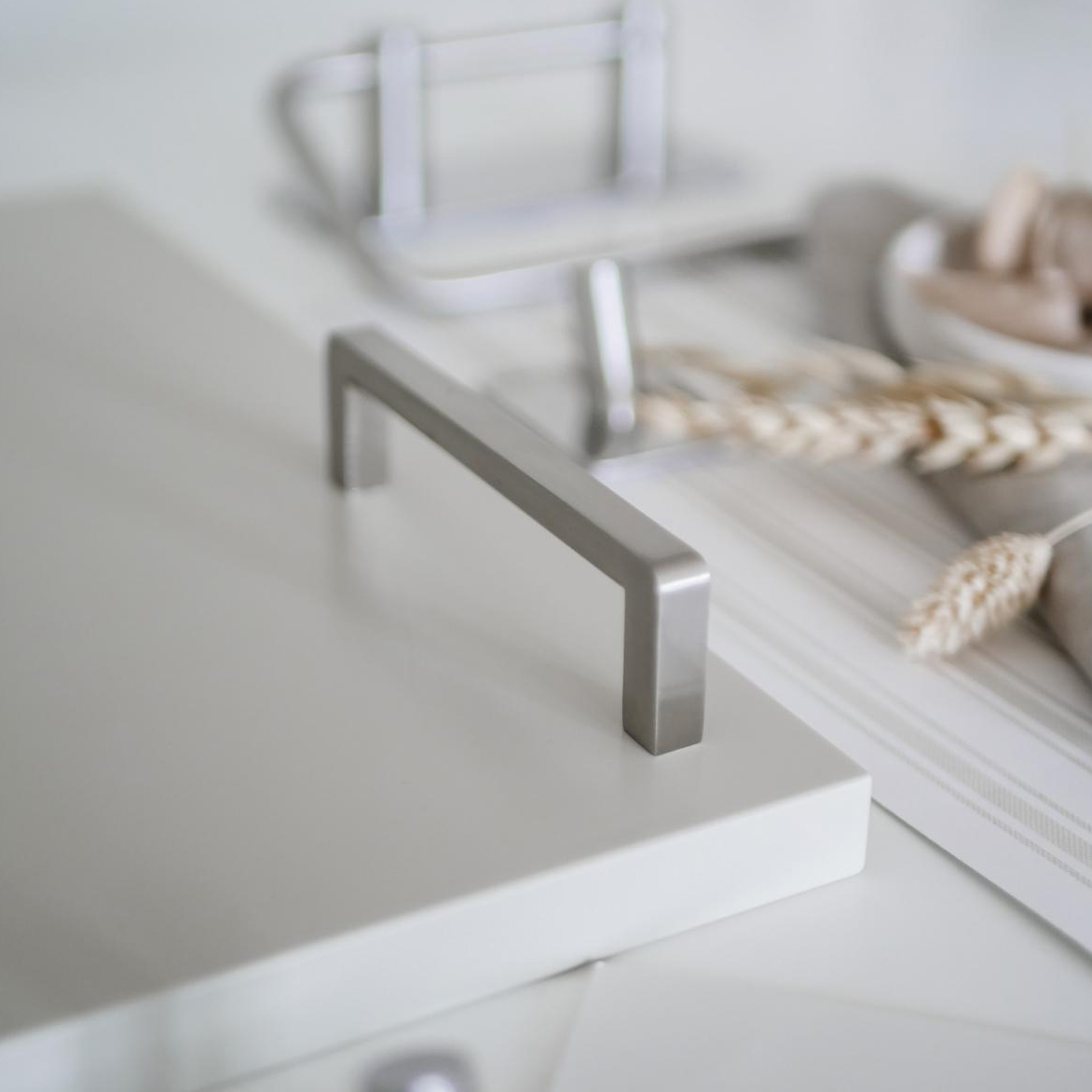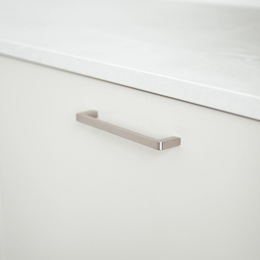 Klassiskt kökshandtag Linfalk i rak modell med en rundad undersida för ett bekvämt grepp.