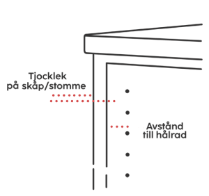 - 0-900 mm höjd & upp till 7kg vikt: 2 st gångjärn
