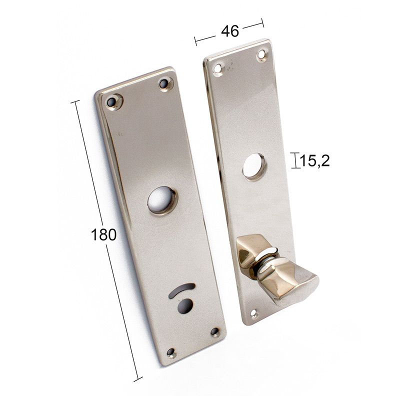 Långskylt med toalettvred för innerdörrshandtag i nickelfinish.